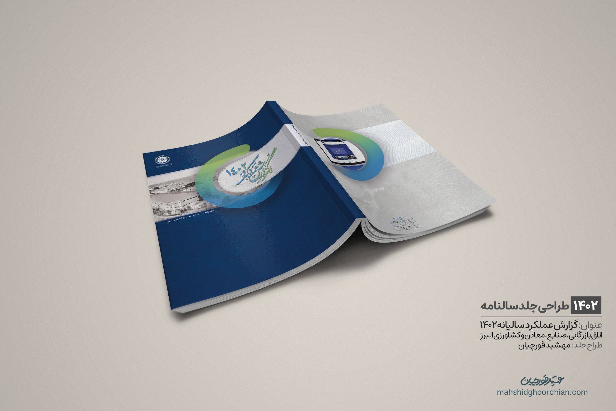 جلد گزارش عملکرد سالانه با طراحی رسمی، خوانا و هماهنگ با هویت سازمانی؛ اثر مهشید قورچیان.