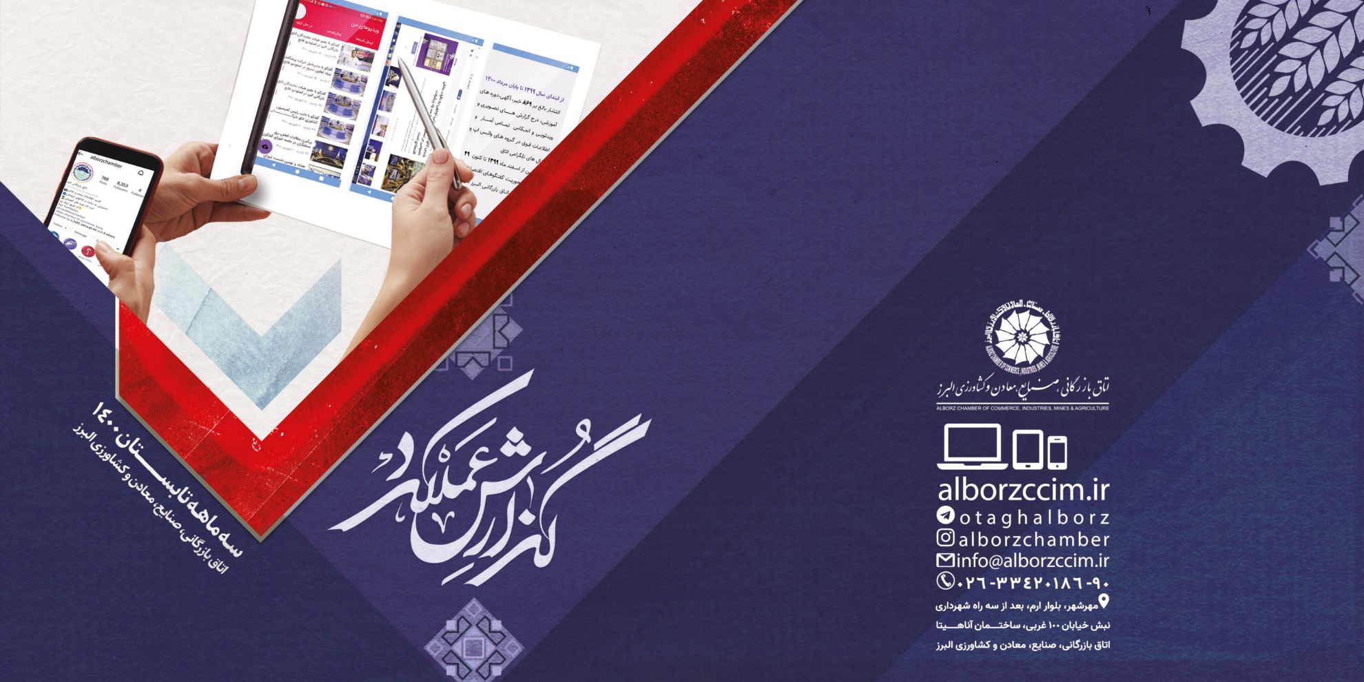 جلد گزارش عملکرد فصلی با طراحی رسمی، خوانا و هماهنگ با هویت سازمانی؛ اثر مهشید قورچیان.